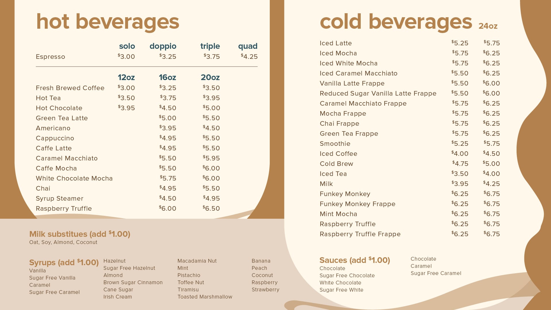 - Brunch: 7:00am – 2:00pm, Sunday
